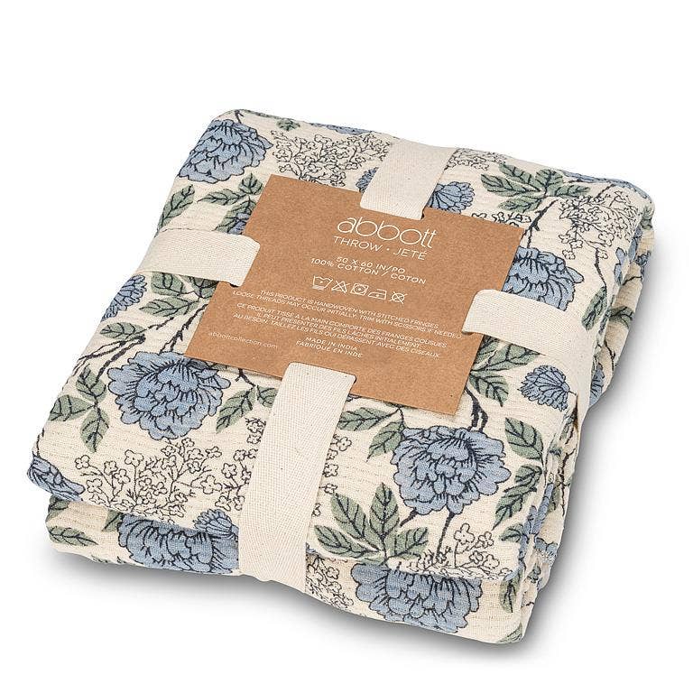 Our blue Amelanchier Floral Throw Blanket is made from 2 layers of soft, stonewashed 100% cotton that sandwich a layer of cotton yarn in between and finished with stitching. This lends a comfortable and cozy feel to these throws. It adds texture and warmth when curled up with a book or a stylish layer on your bed or couch.