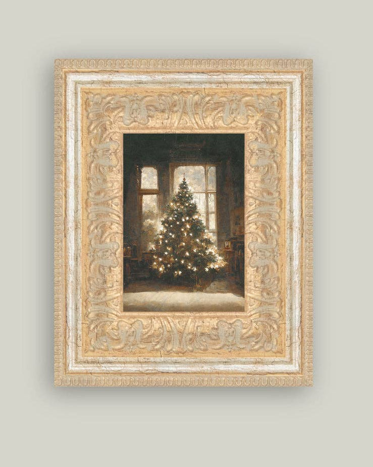 Glowing Christmas Tree Framed Antique Art: 7x9
