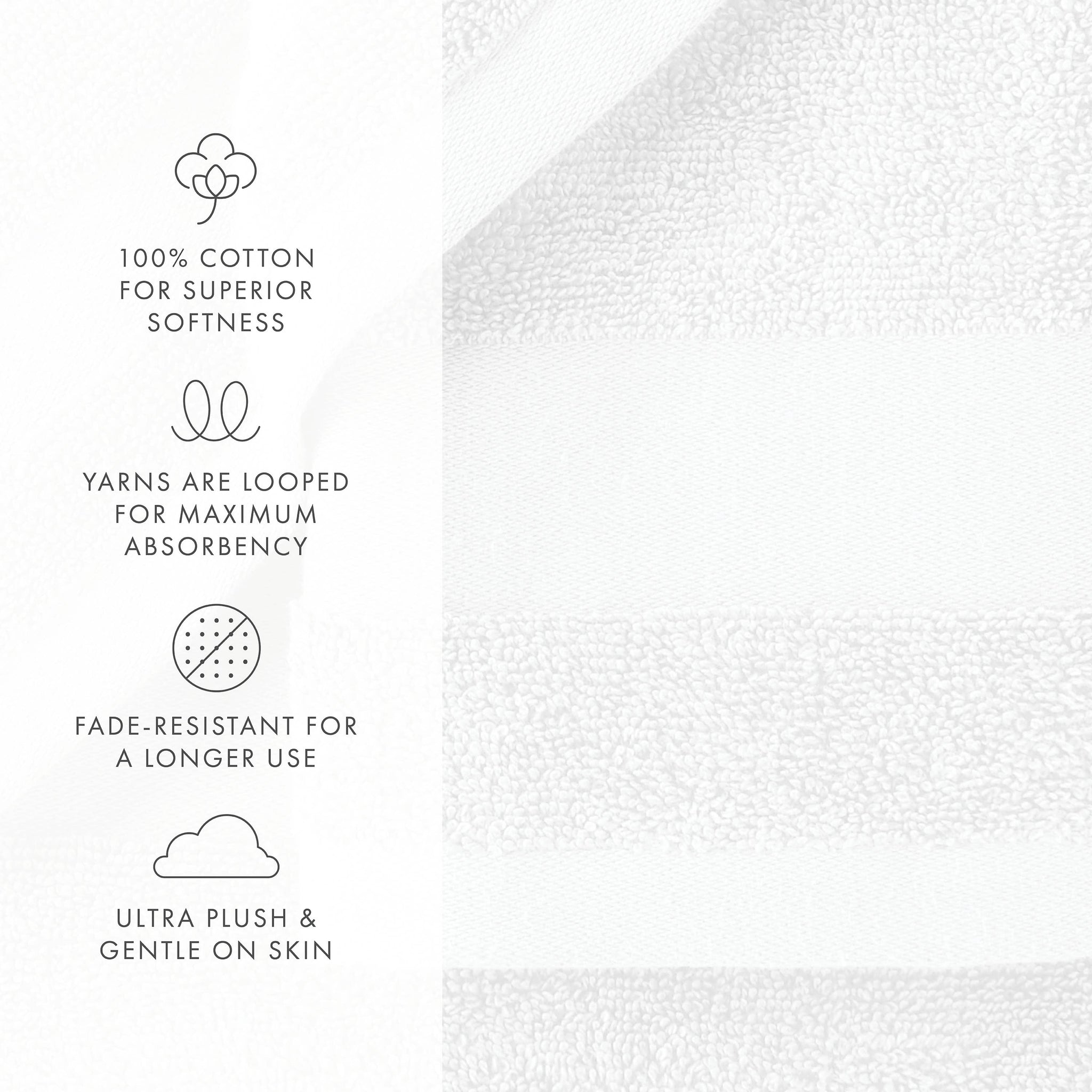 Our luxurious 6-piece towels set are the perfect addition to your bathroom. Including 2 bath towels, 2 hand towels, 2 washcloths, and made of 100% cotton, you get the richness of hotel quality in your very own home. The towels are machine washable and maintain that hotel quality no matter how many times they are washed. Our set comes in elegant colors, making them the ideal choice for both style and necessity. FEATURES: • Decorative dobby border lends a classic look • Yarns are looped for maximum absorbency • Luxury hotel-like thickness and softness no matter how many times you wash it. • Low linting and pilling, Fade resistant. • Fabric Contents: 100% Cotton • Easy Care: machine washable