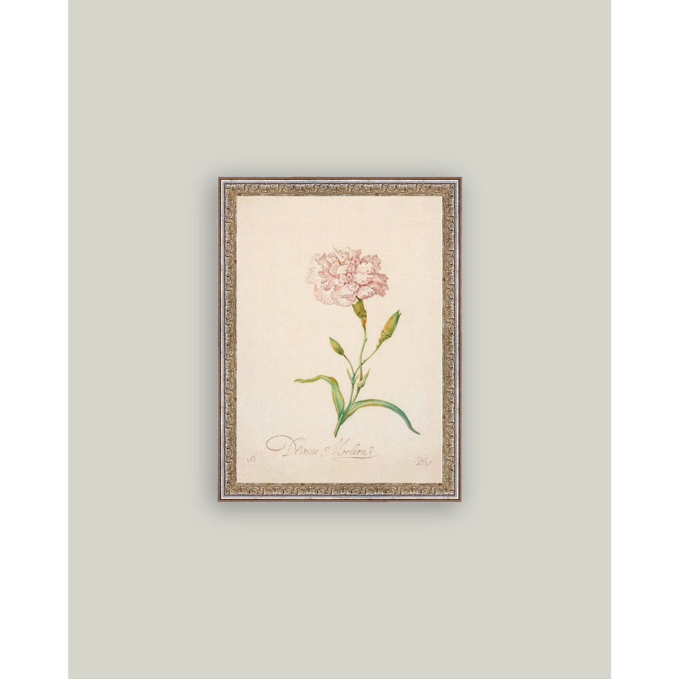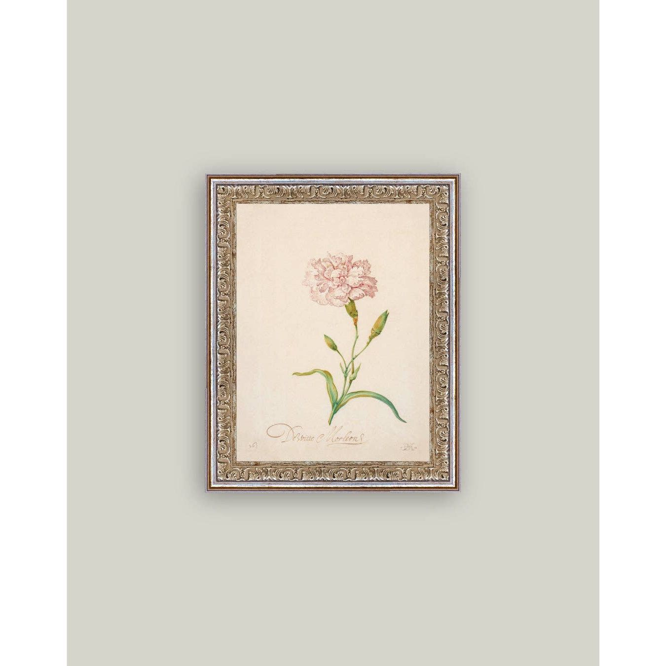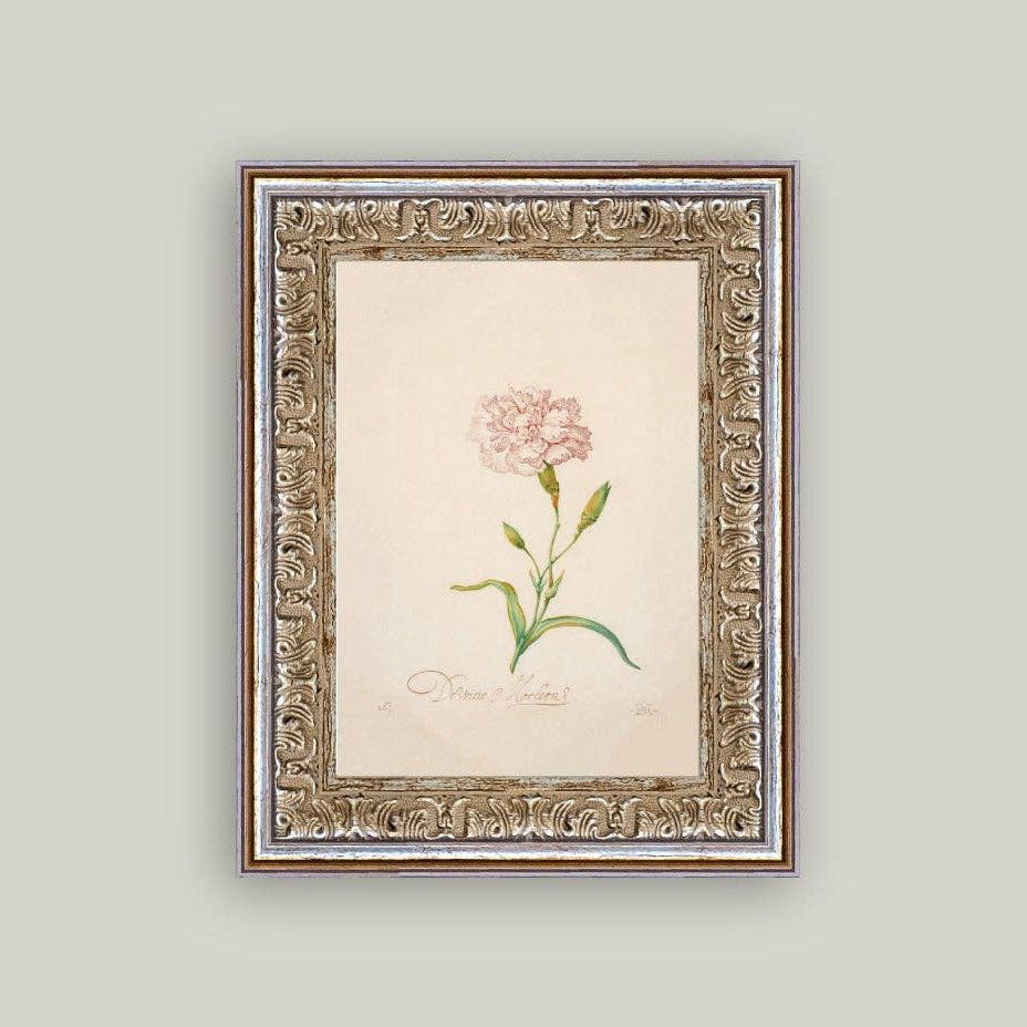 Pink Carnation Framed Antique Art: 5x7