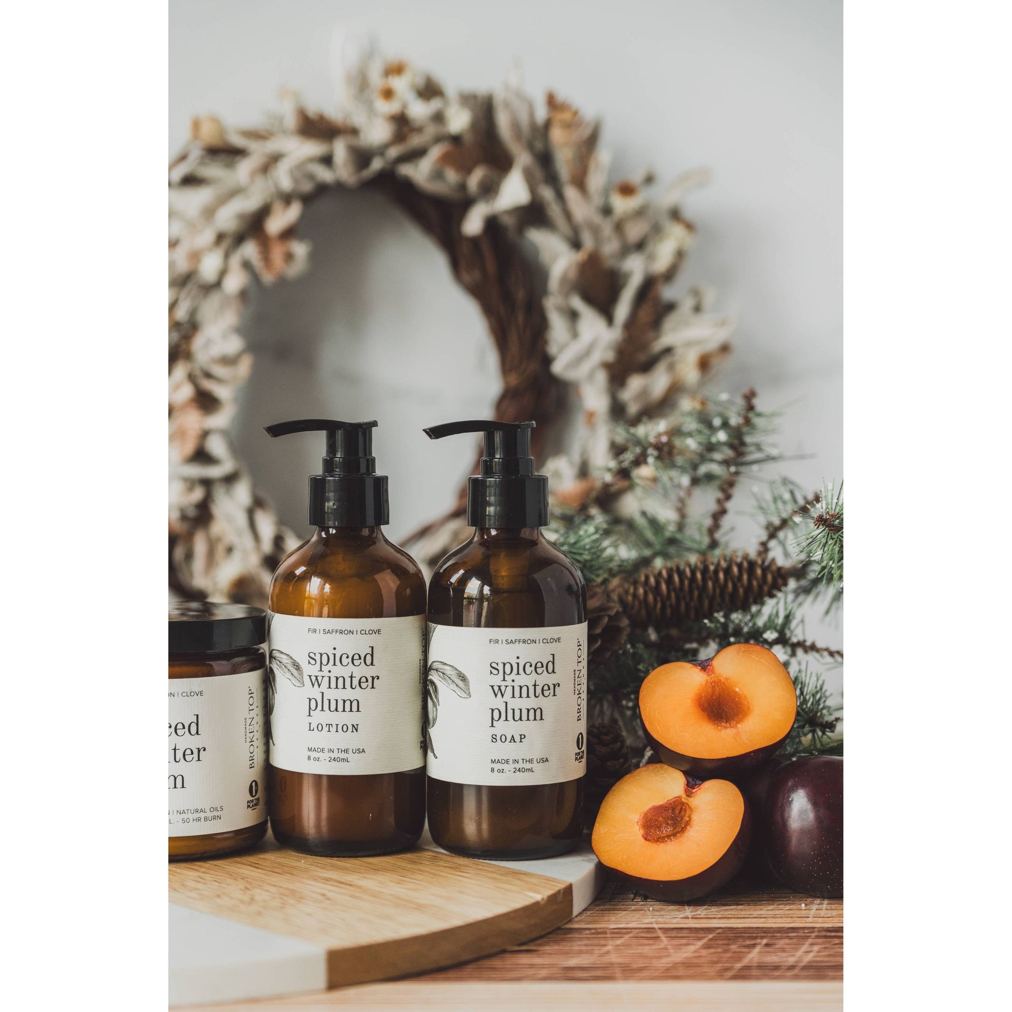 Wrap yourself in the cozy magic of the season with our Spiced Winter Plum Hand & Body Lotion. A holiday hug in a bottle, this festive blend of juicy plum, warm clove, and fresh fir will have you feeling like you’re strolling through a winter wonderland, cup of mulled cider in hand. Rich, spicy, and delightfully sweet, it’s the perfect way to keep your skin merry and bright all season long.