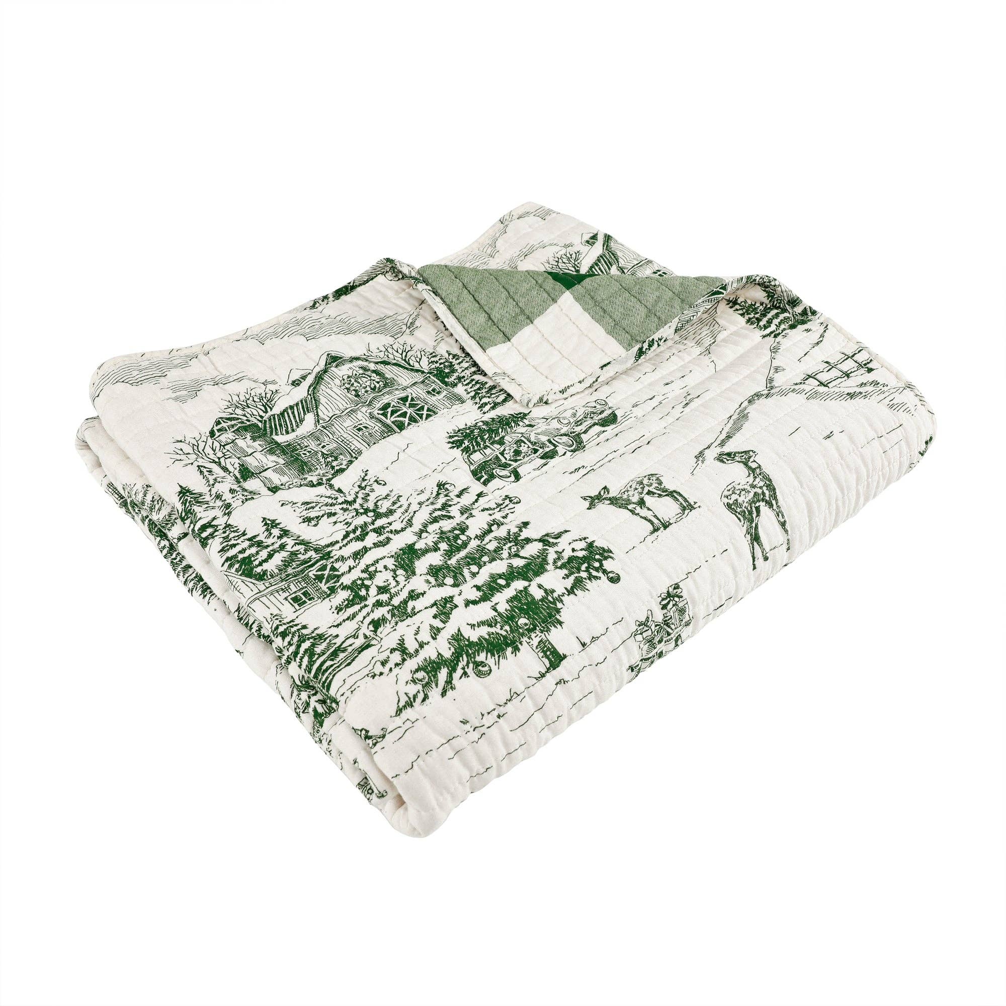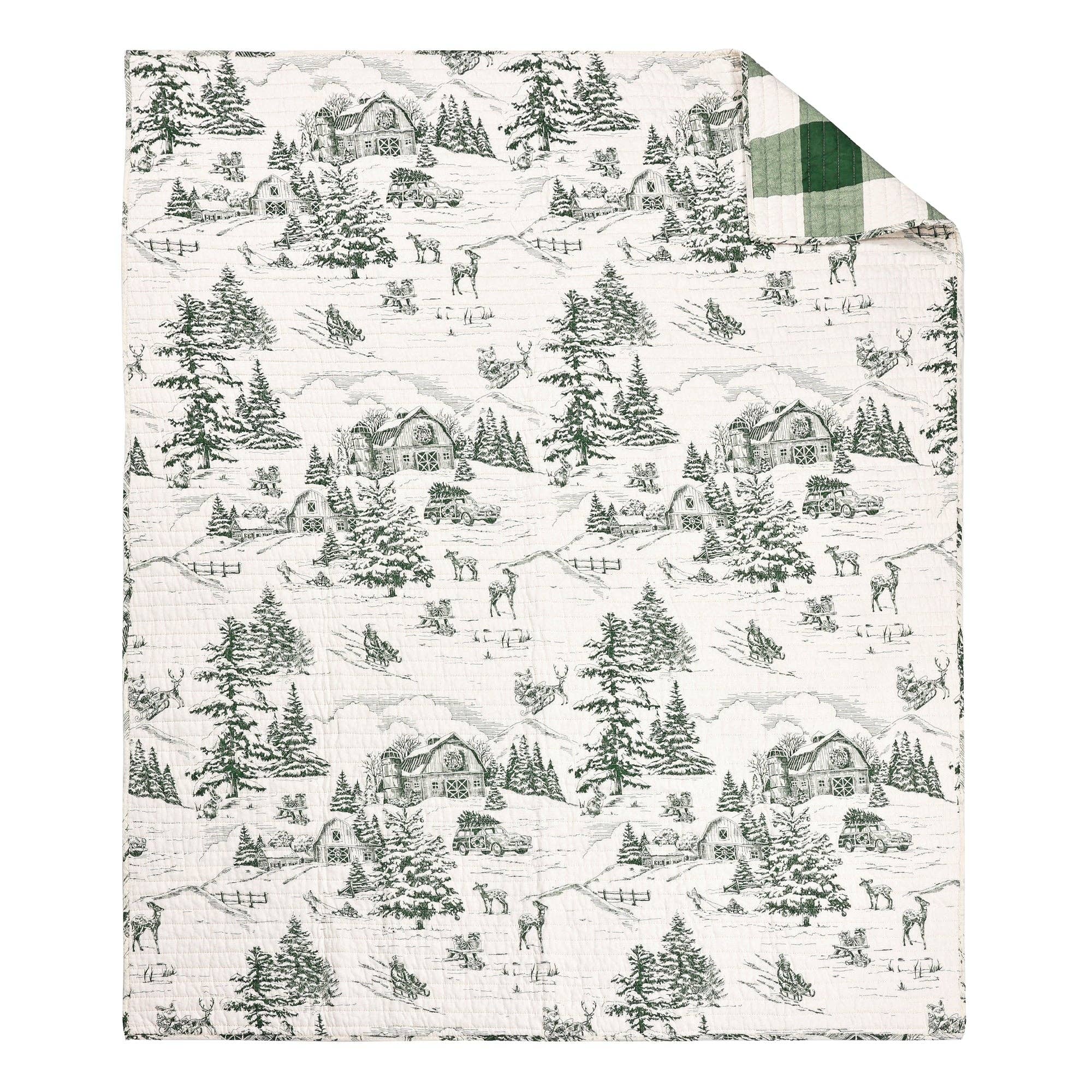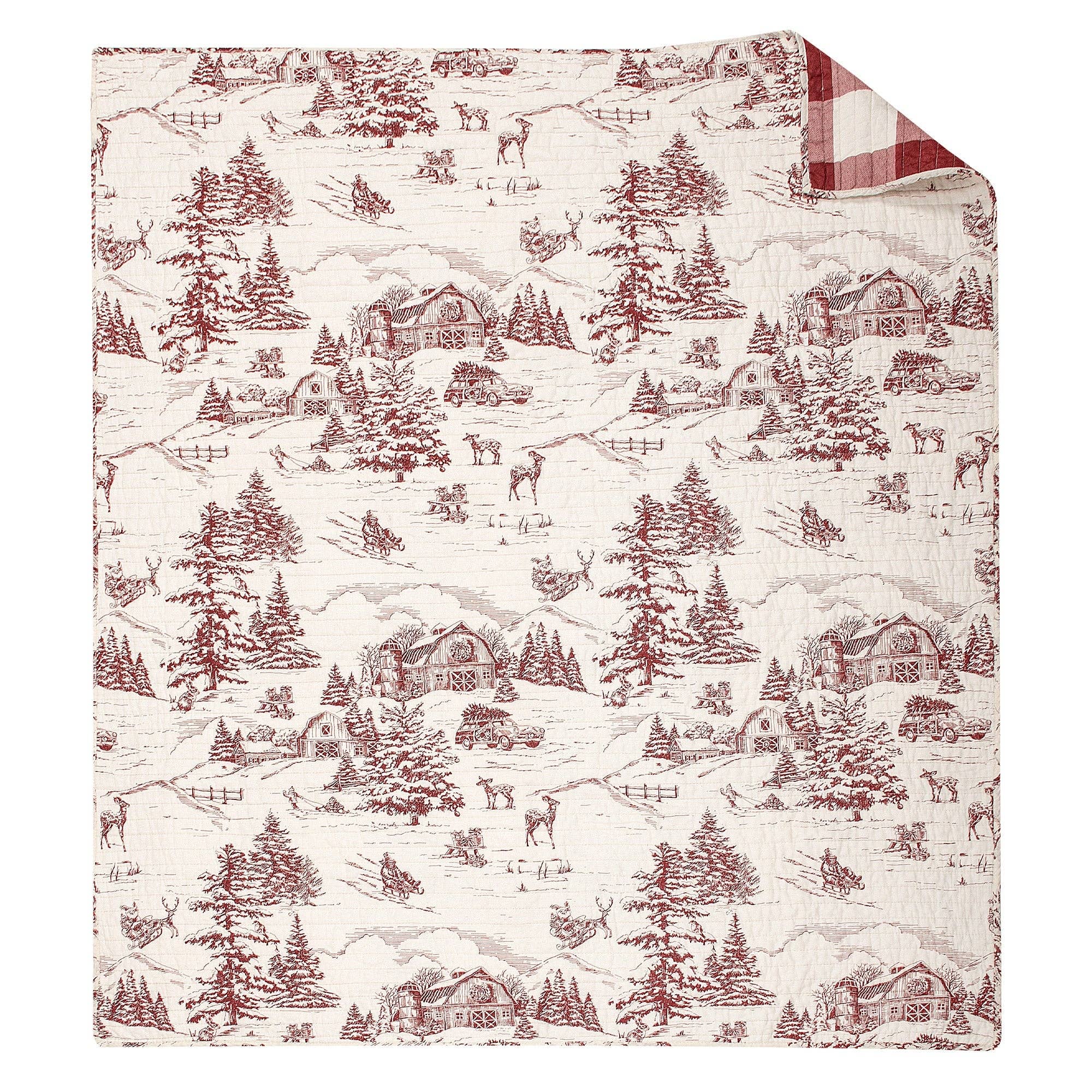 The Winter Sleigh Ride Reversible Throw by Levtex Home is inspired by the joy and fun of the Christmas holidays. Offered in classic red and cream, this design will immediately transform any room in your home. This throw features a vintage winter village scene on the front, reversing to a red and cream buffalo plaid on the back. The Throw (50x60in.) has a cotton front and back, filled with a cotton-rich filler (that includes cotton, polyester and other fibers), and is machine washable. Enjoy this for years to come!